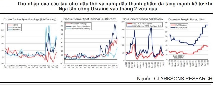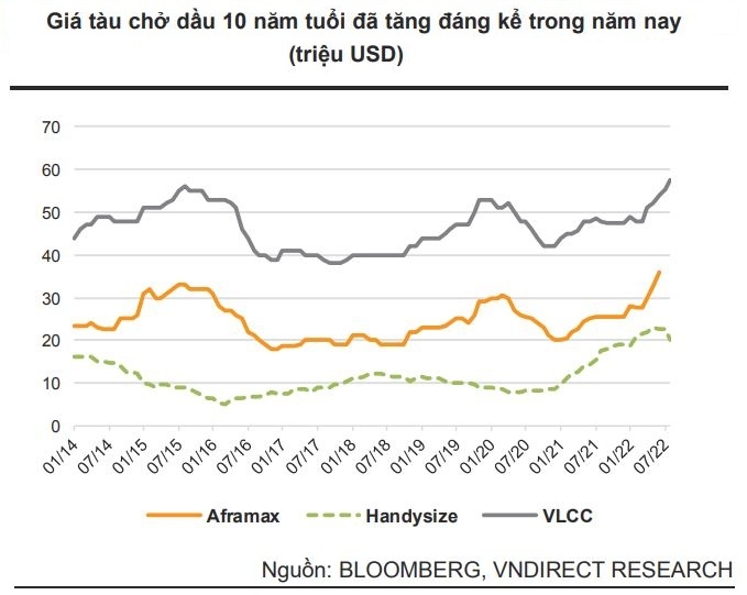 Trong báo cáo cập nhật về ngành dầu khí, Công ty Chứng khoán VNDirect cho biết, nhu cầu đối với tàu chở dầu thô và nhiên liệu tăng lên kể từ khi EU áp đặt các lệnh trừng phạt đối với Nga. Công ty chứng khoán này kỳ vọng xu hướng này sẽ tiếp tục duy trì trong những tháng tới khi lệnh cấm vận của EU có hiệu lực vào cuối năm nay.