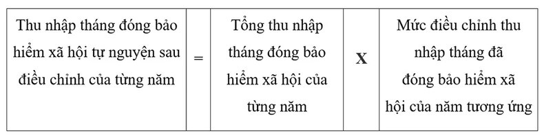 Thu nhập tháng đã đóng BHXH đối với đối tượng quy định tại khoản 2 Điều 1 Thông tư này được điều chỉnh theo công thức sau: