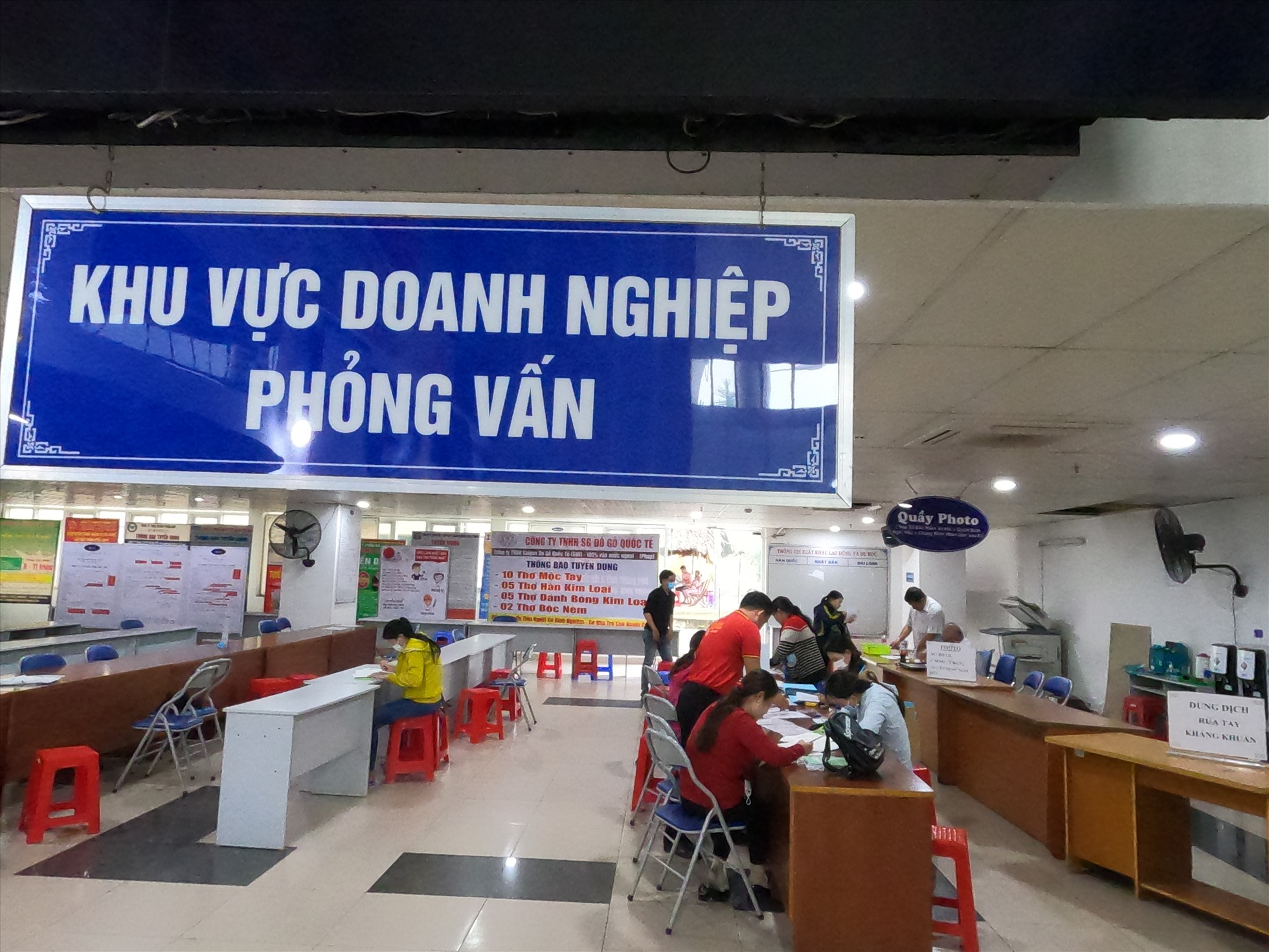 | Khu vực doanh nghiệp phỏng vấn tuyển dụng ở Trung tâm DVVL Bình Dương. Ảnh: Đình Trọng |